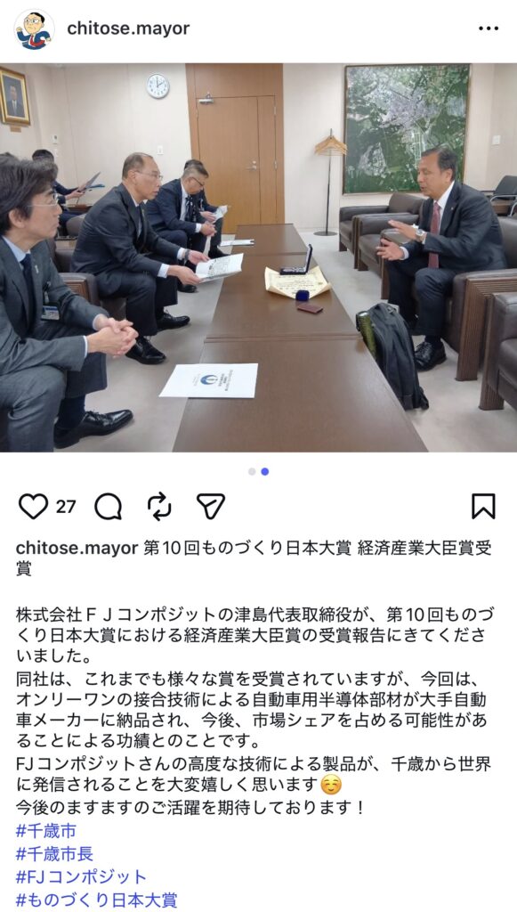 あの時も市役所に伺い、「千歳から技術を発信していく」とお伝えしたことを覚えています。1年越しに、また喜ばしい報告を携えて市役所の扉をくぐれたことは、素直に嬉しかったです。